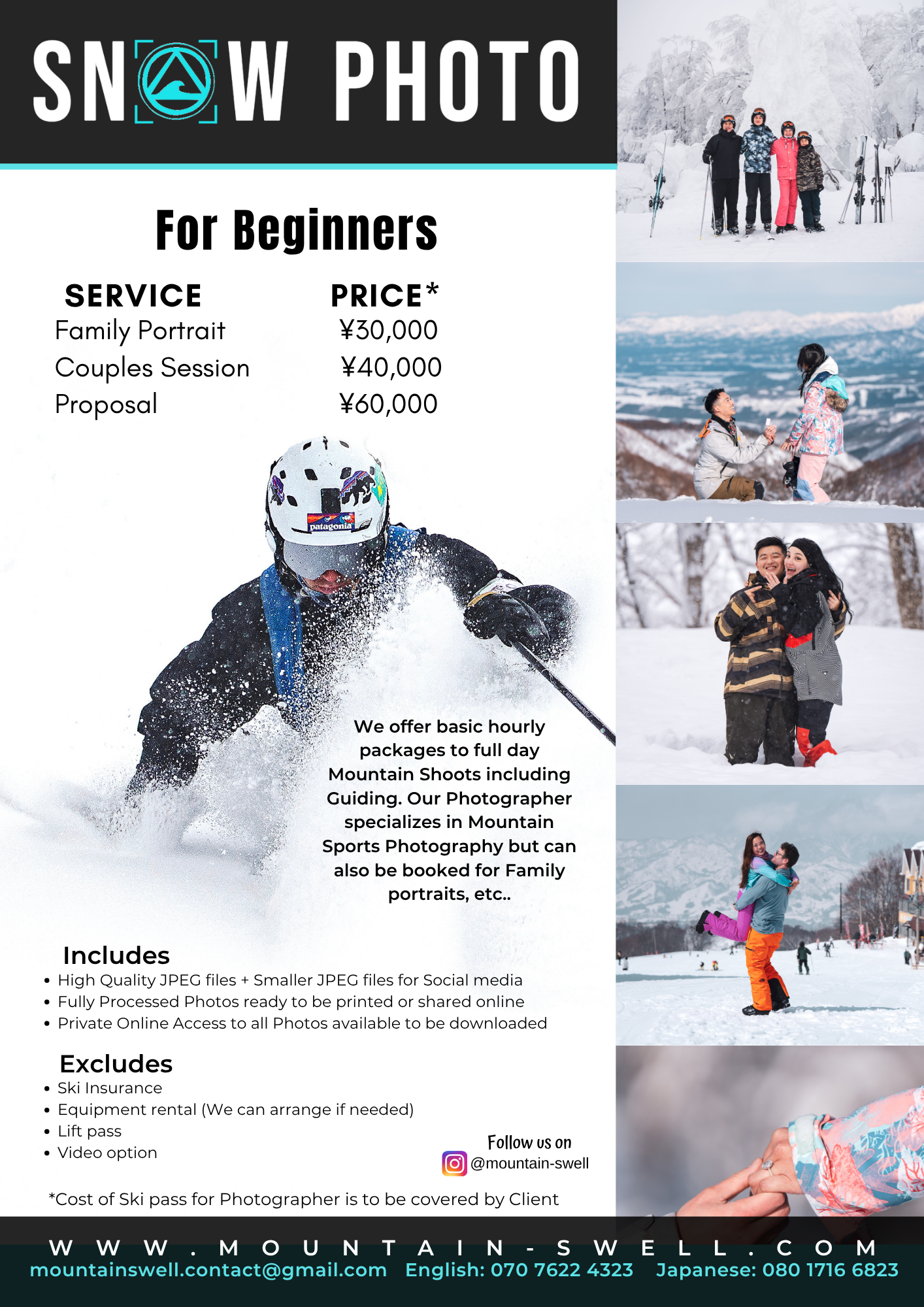 We are based out of the Nagano region and are available to shoot at some of the lesser known ski resorts in Japan. Why not get away from the crowds and experience one of the smaller but powder packed local hills. Get in touch using the form below..